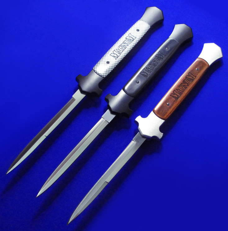 BOKER博克马格南 西西里全自动直跳,XXL。 提示:请留意尺寸,这是XXL,比XL还要大。 全长:32.8cm。 刃厚:2.8mm。 刃材:4034。 柄材:T6骨架,实木贴片。 产地:中国代工(博克的马格南系列,产地都是中国)。 提示:低端直跳不要和微技术比,完美主义慎购。